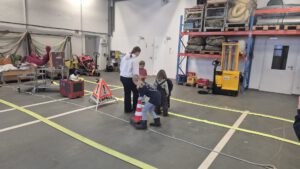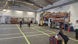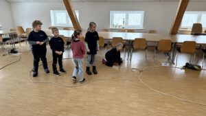 In kleinen Gruppen musste ein Tischtennisball durch einen B-Druckschlauch bewegt werden. Hier war eine gute Kommunikation und Zusammenarbeit sehr wichtig, um die Aufgabe erfolgreich zu meistern.