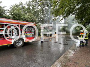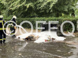 Im weiteren Verlauf wurde der Container ausgekippt, das Brandgut auseinandergezogen und mit Löschschaum bedeckt, um ein wiederentfachen von möglichen Glutnester zu verhindern.