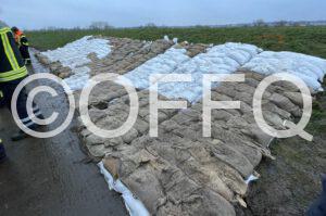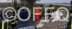 Für den Tag wurde ein „Notfallzug Deich“ zusammengestellt, wofür aus allen Ortsfeuerwehren ein Fahrzeug entsandt wurde. Unsere Kamerad:innen waren im Bereich Hönisch-Hutbergen aktiv und haben den dortigen Deich mit Sandsäcken beschwert, um ein Absacken von dessen Grasnarbe zu verhindern.