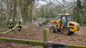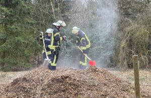 Mit der Unterstützung eines benachbarten Landwirts zogen wir den Haufen auseinander und bauten sicherheitshalber eine Löschwasserversorgung auf. Gleichzeitig kontrollierten wir die Holzschnitzel mit unserer Wärmebildkamera und konnten schnell feststellen, dass es sich nicht um ein Feuer handelte.