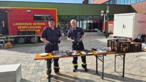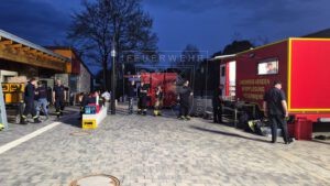 Am 18. und 19. April fand die diesjährige Übung der Kreisfeuerwehrbereitschaft statt und wir haben als Teil des Fachzuges Logistik und Verpflegung wie gewohnt daran teilgenommen. Bereits einen Tag zuvor fuhren wir nach Marklohe bei Nienburg, da für uns zwei Übernachtungen eingeplant waren. Aufgrund der langen Dauer haben wir hierfür unsere teilnehmenden Kamerad:innen in zwei Schichten eingeteilt.