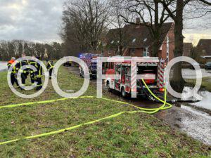Am Morgen wurden wir zur Unterstützung der Ortsfeuerwehr Ottersberg zum Ortsteil Ottersberg Bahnhof alarmiert. Vor Ort hat sich aufgrund der Hochwasserlage Wasser auf der wasserabgewandten Deichseite angesammelt, weswegen die Straße bereits überflutet war und die anliegenden Häuser bedroht wurden. Zusammen mit den Kamerad:innen und unseren Tragkraftspritzen sowie Tauchpumpen haben wir das Wasser abgepumpt und zumindest vorläufig die Lage beruhigt.