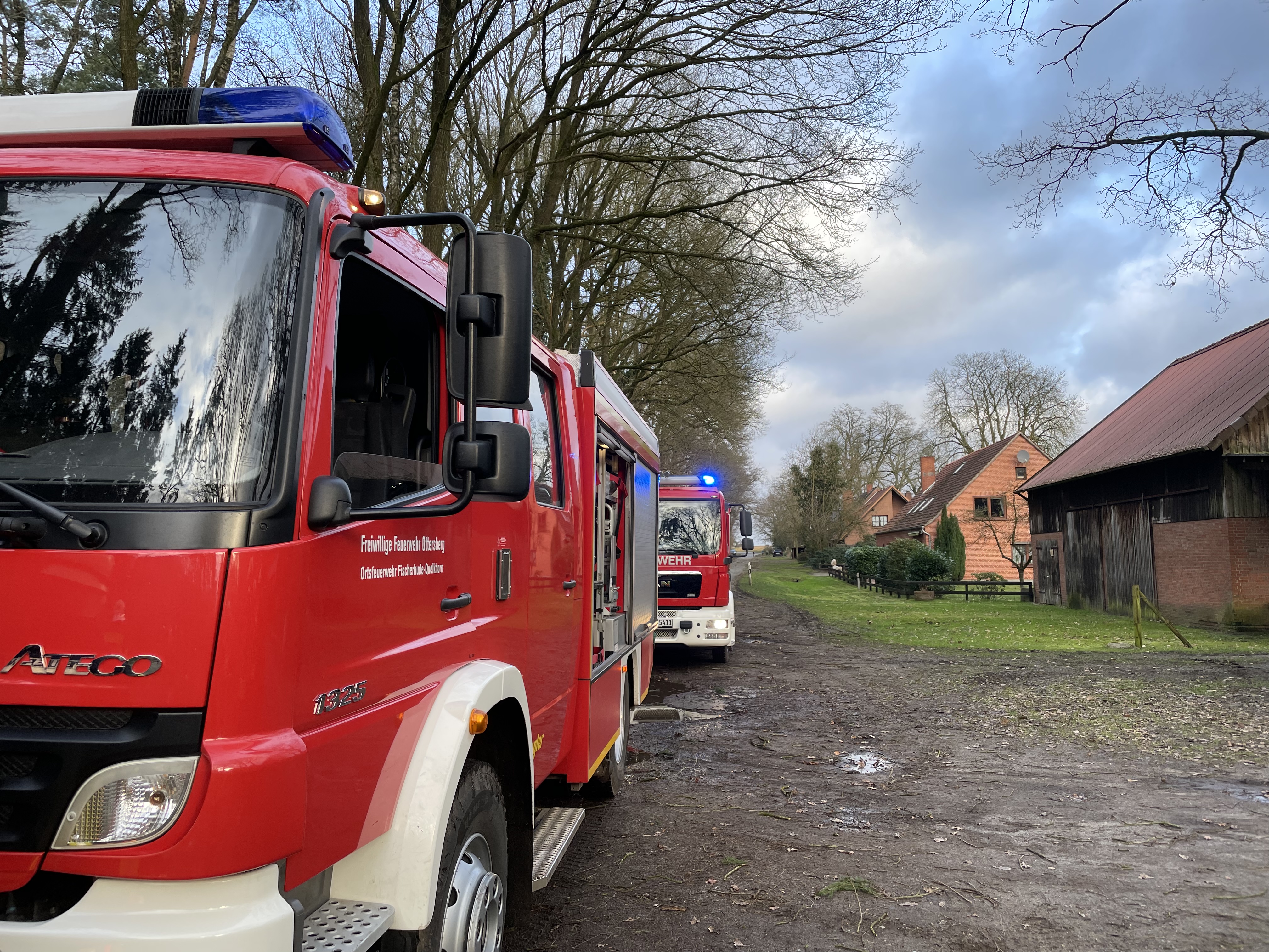 Am Nachmittag wurden wir erneut zu zwei weiteren Einsätzen alarmiert. Hier unterstützte uns einerseits die Drehleiter aus Oyten und andererseits der Wümme-Wasser-Verband mit einem Bagger.