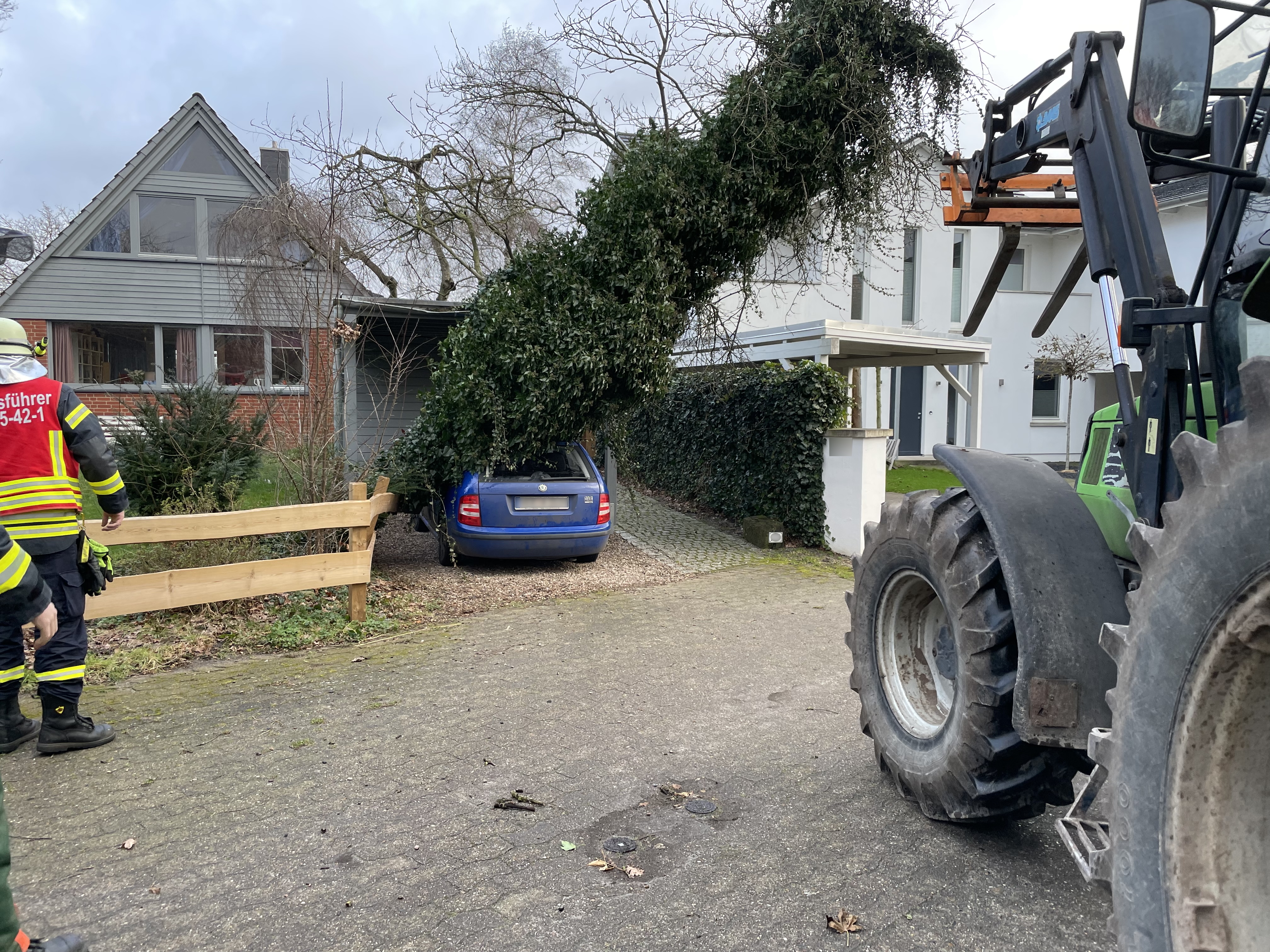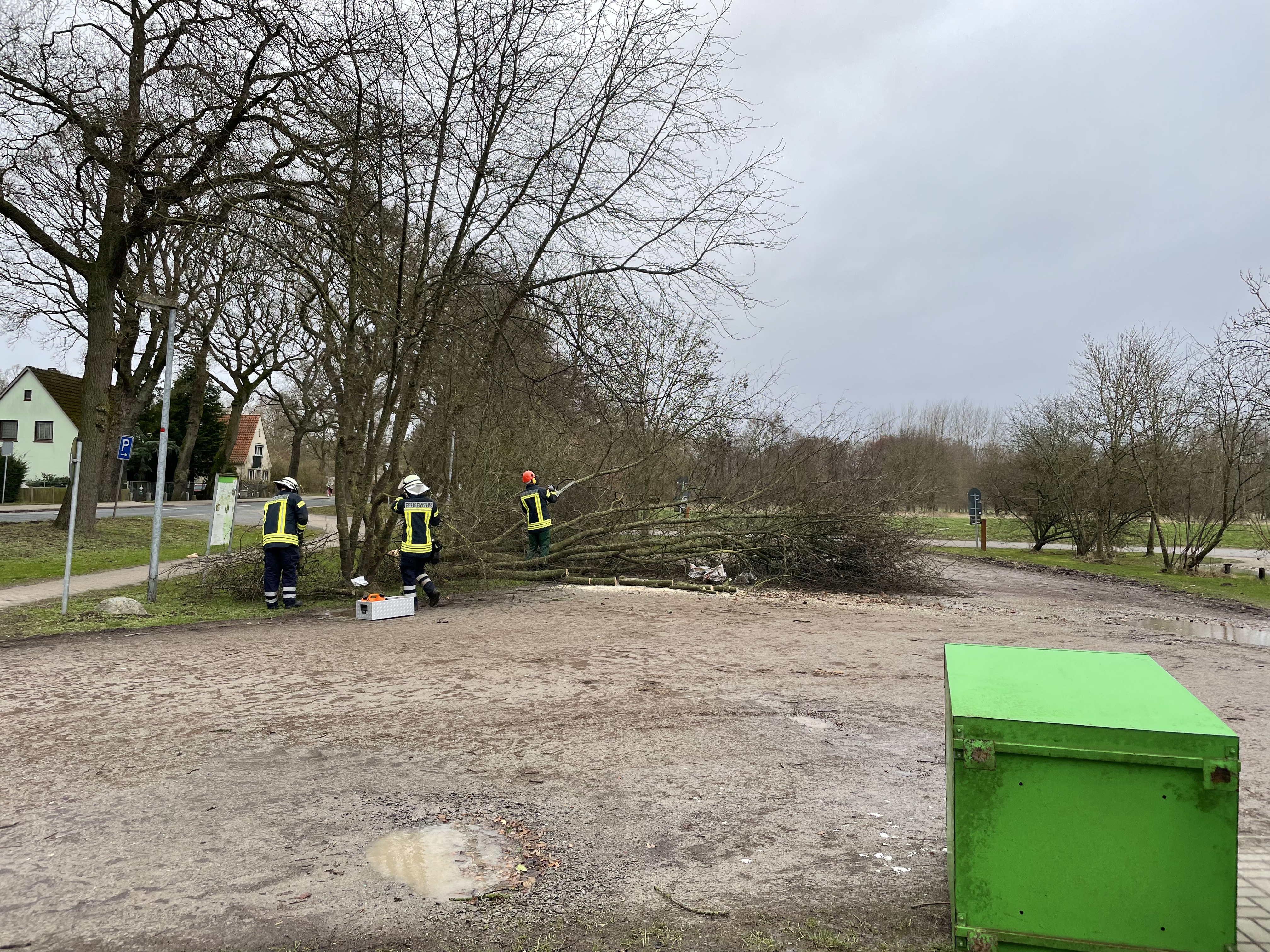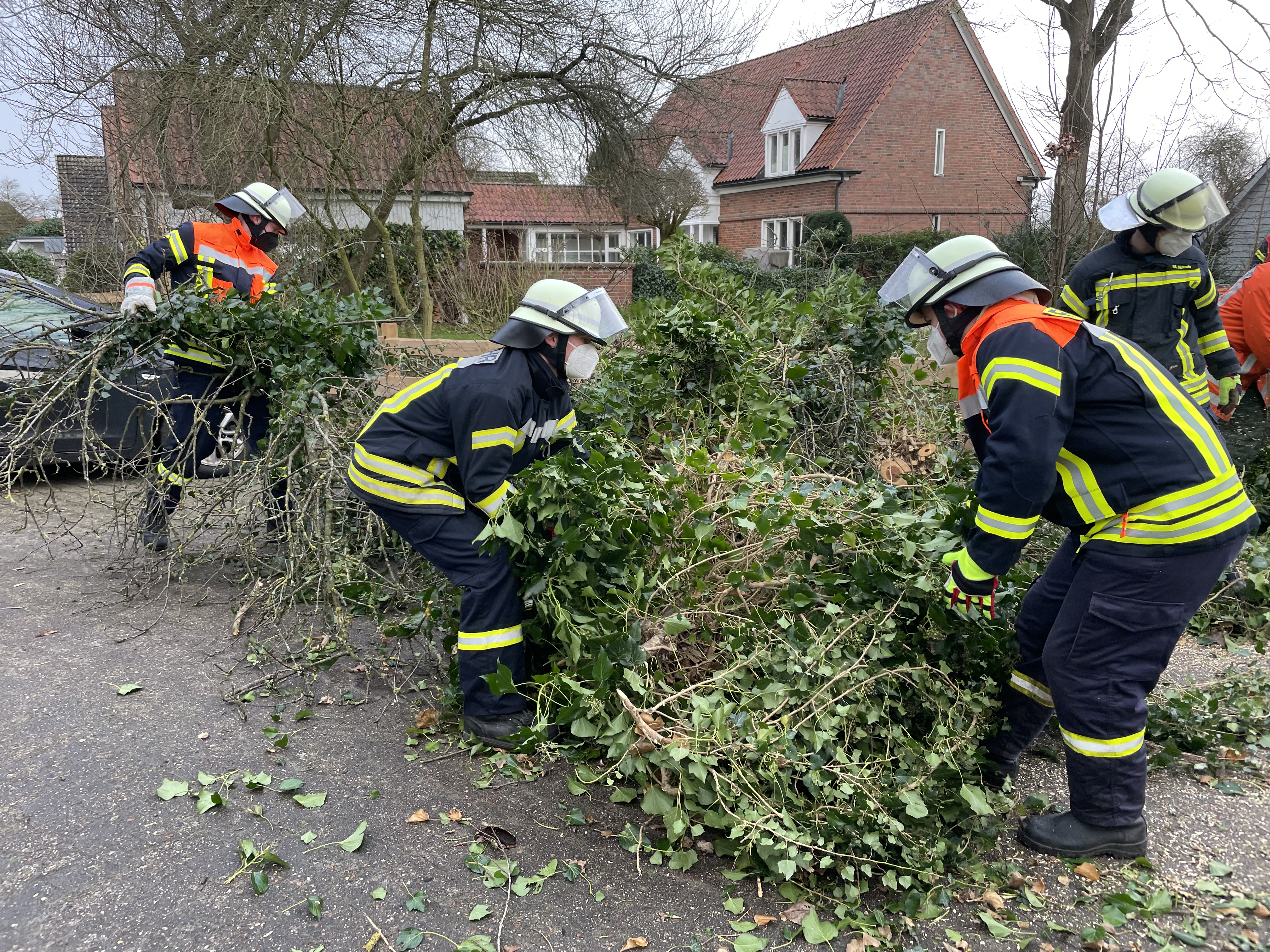 Kurz nach 8 Uhr am Donnerstagmorgen alarmierte uns die Leitstelle das erste Mal. Aber an dieser Einsatzstelle brauchten wir nicht tätig werden. Über den Vormittag verteilt, wurden wir insgesamt zu sieben Einsätzen gerufen/alarmiert. Hier kam uns auch ein Landwirt mit Traktor sowie der Bauhof des Flecken Ottersbergs zur Hilfe. Unter anderem stürzte ein Baum auf ein geparktes Auto.