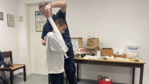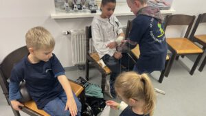So ging es bei der einen Station um die Wundversorgung, wo sich die Kinder nach einem kleinen Theorieanteil gegenseitig Fingerkuppenpflaster, Druckverbände oder auch Kopfverbände anlegen konnten.