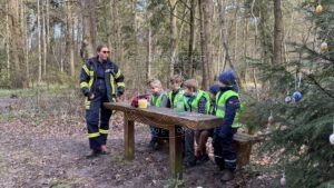Am Abend ging es dann direkt weiter mit unserem Osterfeuer. Dort bot das Team der Kinderfeuerwehr Stockbrotteig an Spießen gegen eine Spende an. Ein herzliches Dankeschön gilt den Eltern unserer Löschdinos, die den Teig vorbereitet und zur Verfügung gestellt haben.