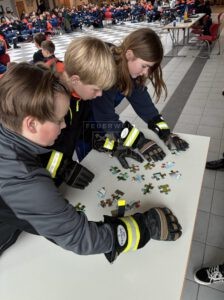 Die Kategorien waren in diesem Jahr, auch auf Wunsch des Kreisjugendforums, besonders abwechslungsreich. Neben den Klassikern „Feuerwehr“ und „Sport allgemein“ wurden zum ersten Mal auch Fragen in den Themenbereichen „Gaming“, „Influencer“ oder „Make Up“ gestellt. Beim Zwischenspiel sollten besonders junge Gruppenmitglieder teilnehmen und hier mit großen Feuerwehrhandschuhen ein Puzzle fertigstellen. Unsere drei Jugendlichen haben sich hierbei sehr gut geschlagen. Da in diesem Jahr nicht gelaufen werden durfte, um Zwischenpunkte einzusammeln, war die Veranstaltung eher ruhig. Trotzdem haben unsere Jugendlichen fleißig mit gerätselt und letztlich erfolgreich eine gute Platzierung erreicht. Mit guter Laune ging es dann wieder quer durch den Landkreis nach Hause und alle konnten noch den restlichen Sonntag genießen.