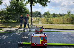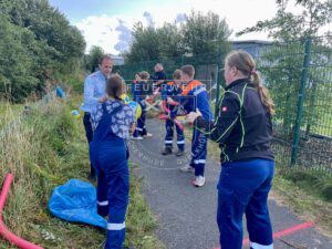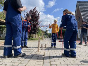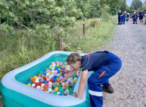 Anlässlich des Jubiläums der Jugendfeuerwehr Baden hat die Veranstaltung dort stattgefunden und wir haben mit unseren Gruppen jeweils zwölf wirklich abwechslungsreiche und tolle Spiele absolviert. Bei dem ein oder anderen Spiel mussten auch die drei mitgefahrenen Betreuenden ran; so wurden sie einmal mit verbundenen Augen von den Jugendlichen durch einen Hindernis-Parcours geleitet oder mussten bei einem anderen Spiel schwitzen und den Jugendlichen rennend Bälle zurückbringen. Ein weiteres Highlight war wohl auch das Spiel, bei dem die Jugendlichen einen Traktor gezogen und Rundballen auf Zeit geschoben haben oder mit einem Bällebad ein Worträtsel lösen mussten.
