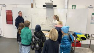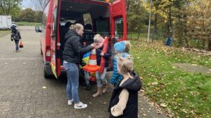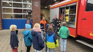 Hier durften die Kinder den Lichtmast eines Feuerwehrfahrzeugs selbstständig ein- und ausfahren. Außerdem wurde gezeigt, wie ein Stativ mit Strahlern aufgebaut und eingesetzt wird. So konnten die Kinder hautnah erleben, wie eine Einsatzstelle bei Dunkelheit richtig ausgeleuchtet wird.