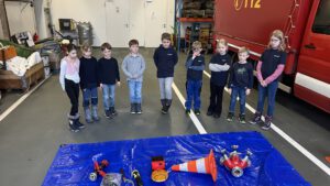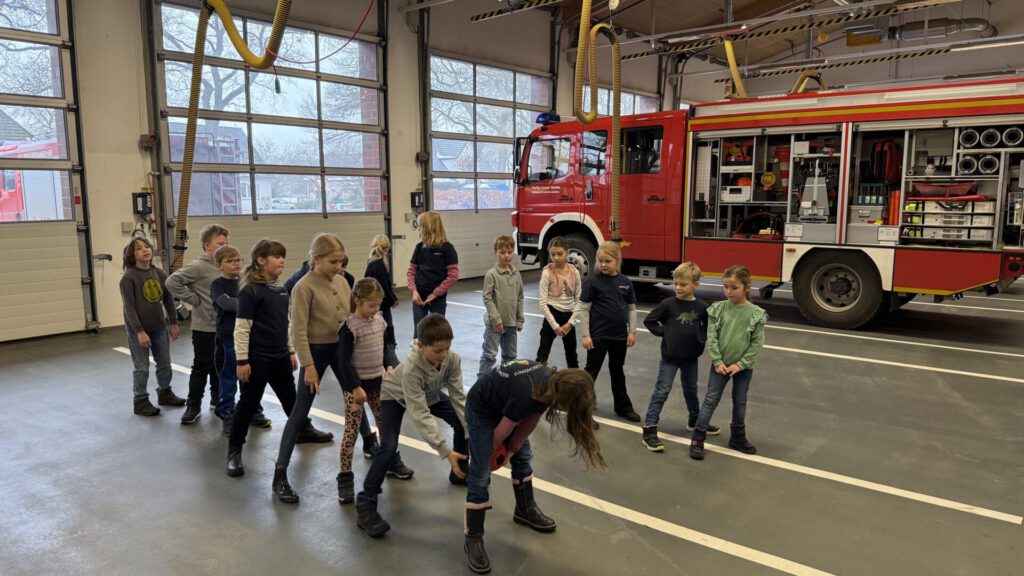 Beim vergangenen Dienst der Kinderfeuerwehr erwartete unsere Löschdinos wieder ein vielseitiges Programm. Bevor es an die inhaltlichen Stationen ging, starteten alle Kinder – aufgeteilt in zwei Gruppen – mit einem Aufwärmspiel, das Teamarbeit und Kommunikation in den Mittelpunkt stellte. Mit viel Begeisterung meisterten die Löschdinos die Aufgabe und waren damit bestens auf den weiteren Dienst eingestimmt.